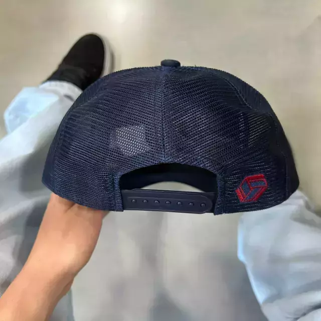 100% algodão, aba curva, com logotipo e simbolo bordado na parte frontal e fecho em snapback.